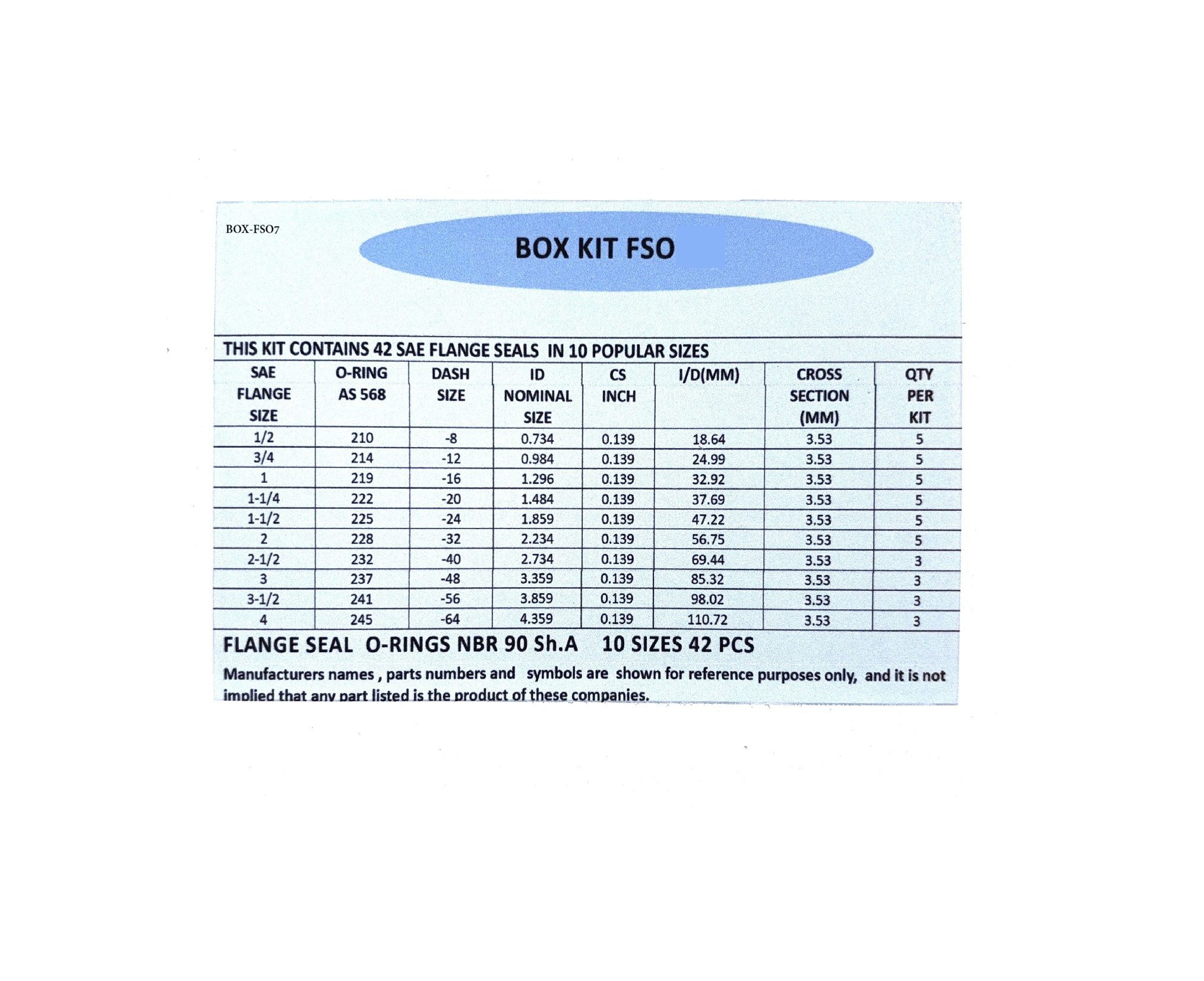 O-ring NBR90 Shore A kit for SAE flange fittings.